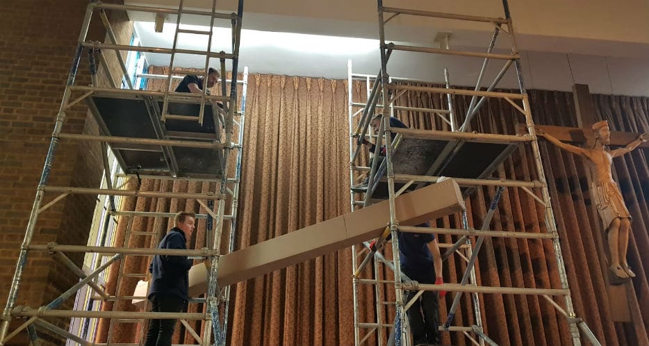 There’s a large 3.7m projector screen in the church that is used sparingly. Unfortunately, the spring mechanism has broken, and it has been stuck down for a number of years. In a bid to help the church with their appeal, we opted to buy and install a new screen.