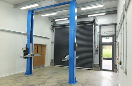 Working literally from the ground up, the project consisted of steelwork, partition walls, roller shutter doors, electrics, plumbing and air conditioning. Once the garages were built, we then moved onto the interiors, fitting fire alarms, vehicle hoists, workbenches, furniture and high energy efficient lighting.